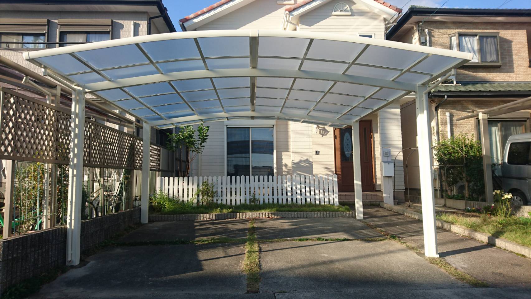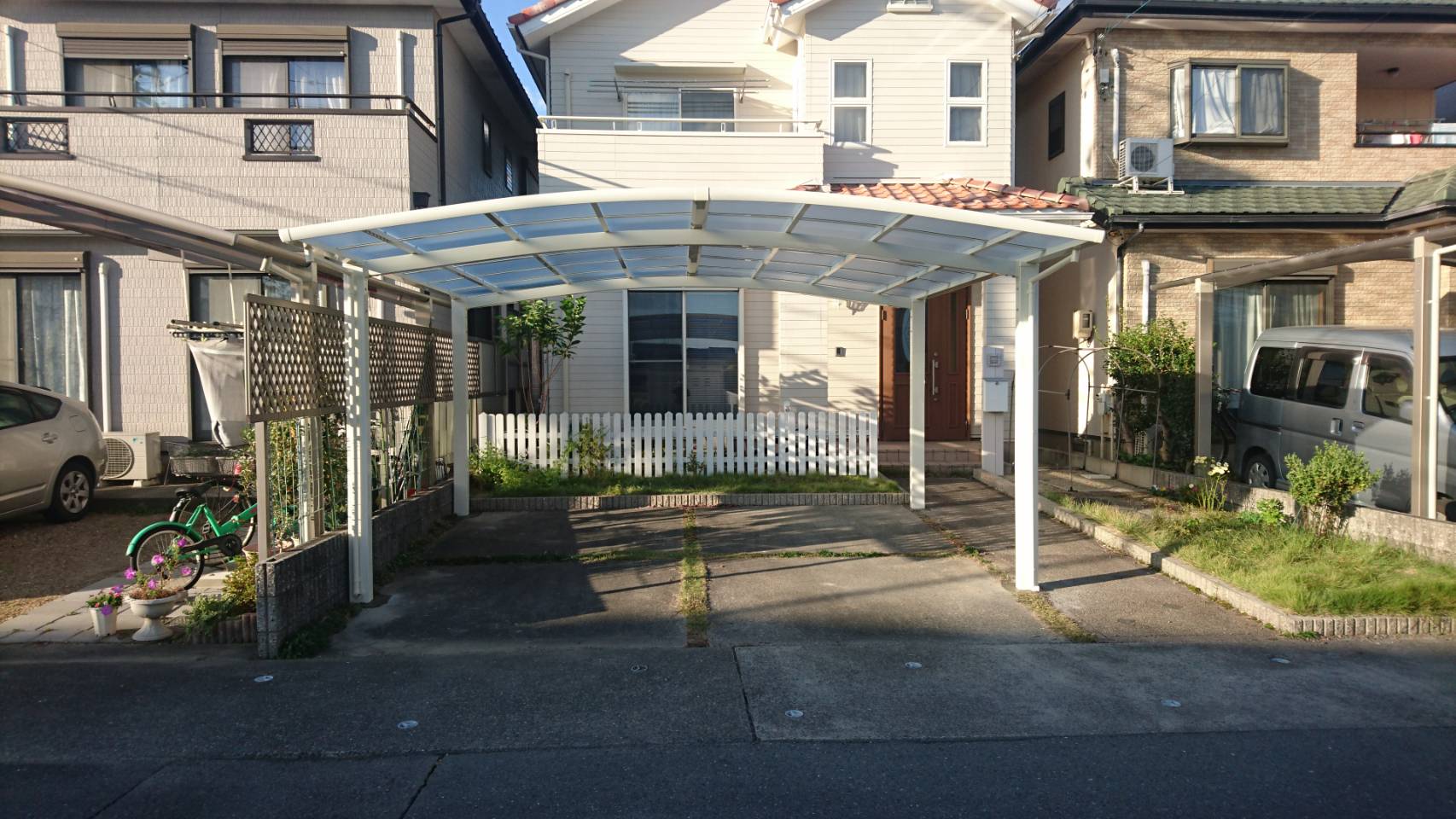 今のままでは車が雨ざらし状態になっているので、車2台分のカーポートを設置したいとご希望でした